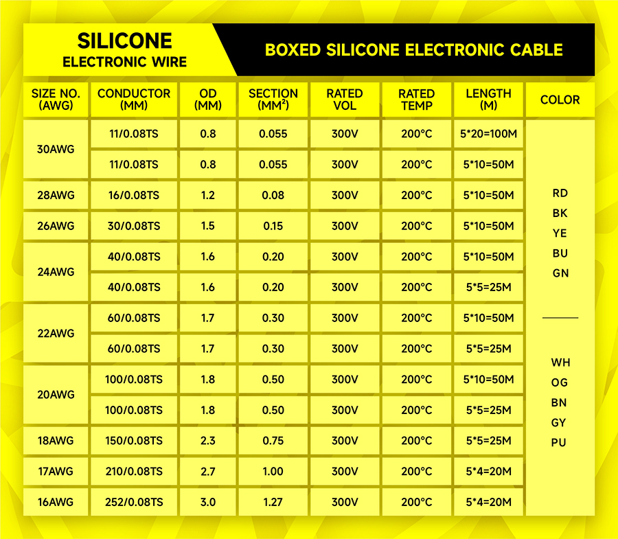 Boxed silicone electronic wire
